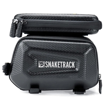 Geanta impermeabilă Snake Track vă permite să utilizați confortabil telefonul sau sistemul de navigație în timp ce mergeți cu bicicleta, chiar și pe vreme ploioasă. Designul ranforsat „hard-shell” și capacitatea mare (1,5 l) vă permit să transportați în siguranță obiecte mici, cum ar fi chei, unelte de reparații, portofel, telefon, încuietoare pentru bicicletă și chiar o băutură mică sau sandvișuri. Asamblarea genții este rapidă și ușoară - nu sunt necesare unelte. Datorită peliculei tactile conductive, putem opera ecranul tactil fără a scoate telefonul din geantă. Produsul este montat pe cadrul bicicletei, asigurând siguranța telefonului transportat. Dimensiunile spațiului telefonului 18 x 8 cm, fereastră 16,2 x 6,6 cm.