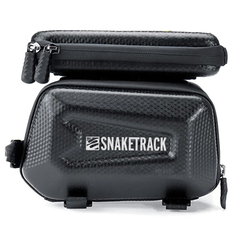 Geantă triplă impermeabilă pentru bicicletă cu suport pentru telefon – Snake Track ST04, neagră