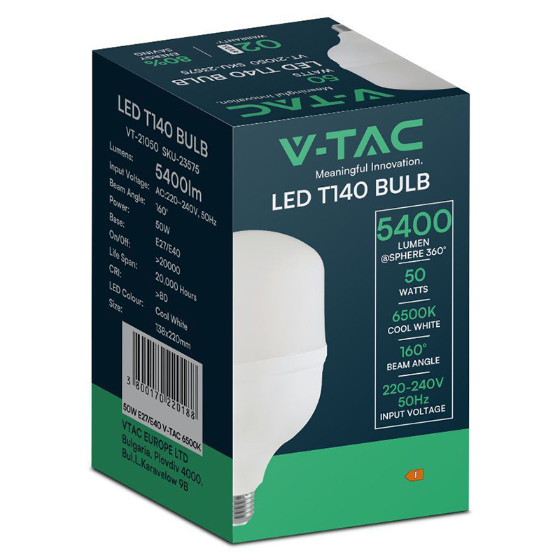 Informații generale | Soclu: E27 + adaptor E40, Formă: T160, Tip LED: SMD, Durata de viață: 20,000 ore |