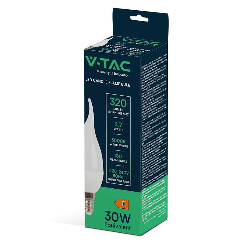 V-TAC BEC LED E14 3.7W 3000K ALB CALD