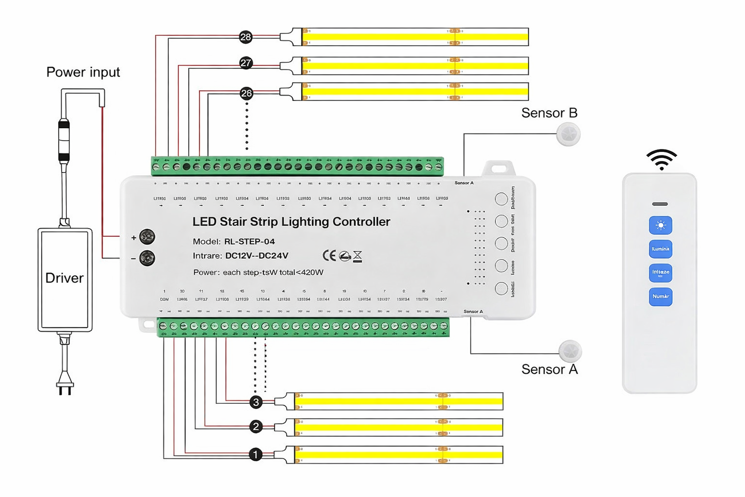 Model RL-STEP-04 (12V-24V DC) cu telecomandă și senzori