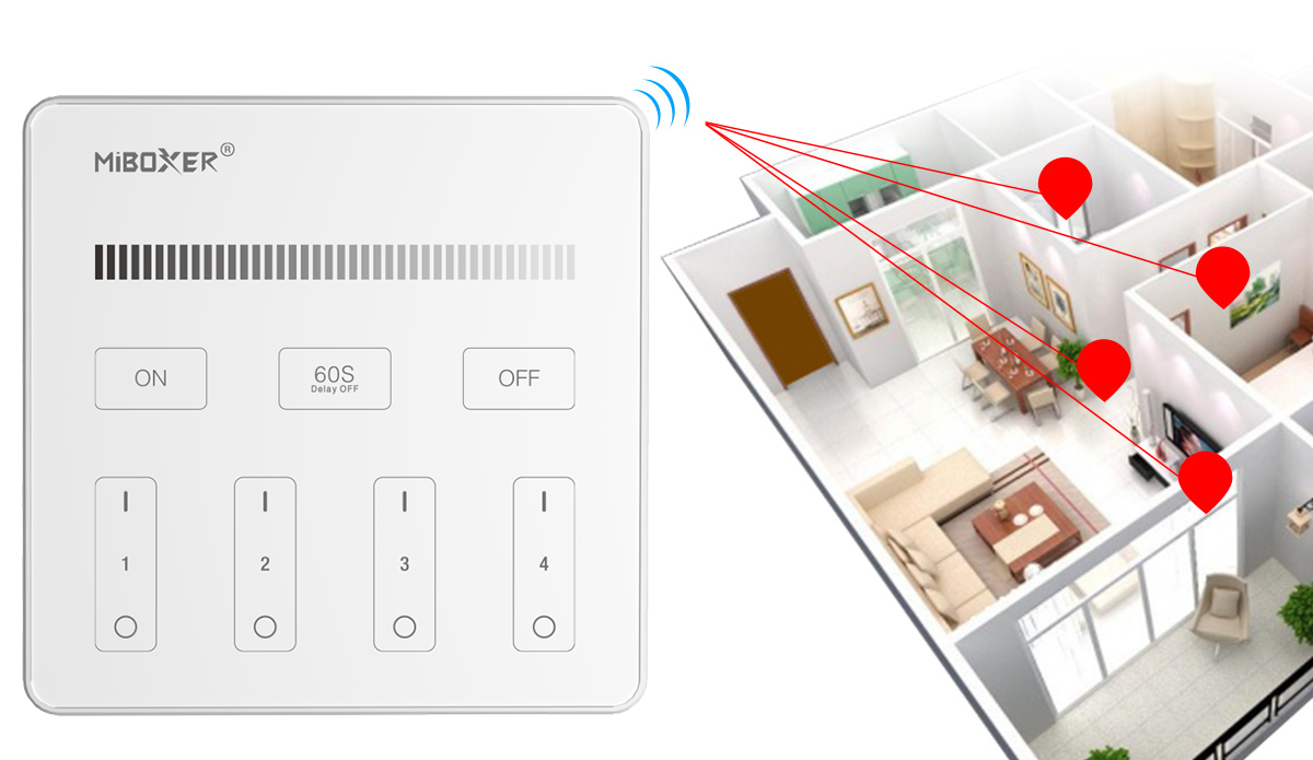 Fiecare zonă controlează un număr nelimitat de lămpi sau controllere