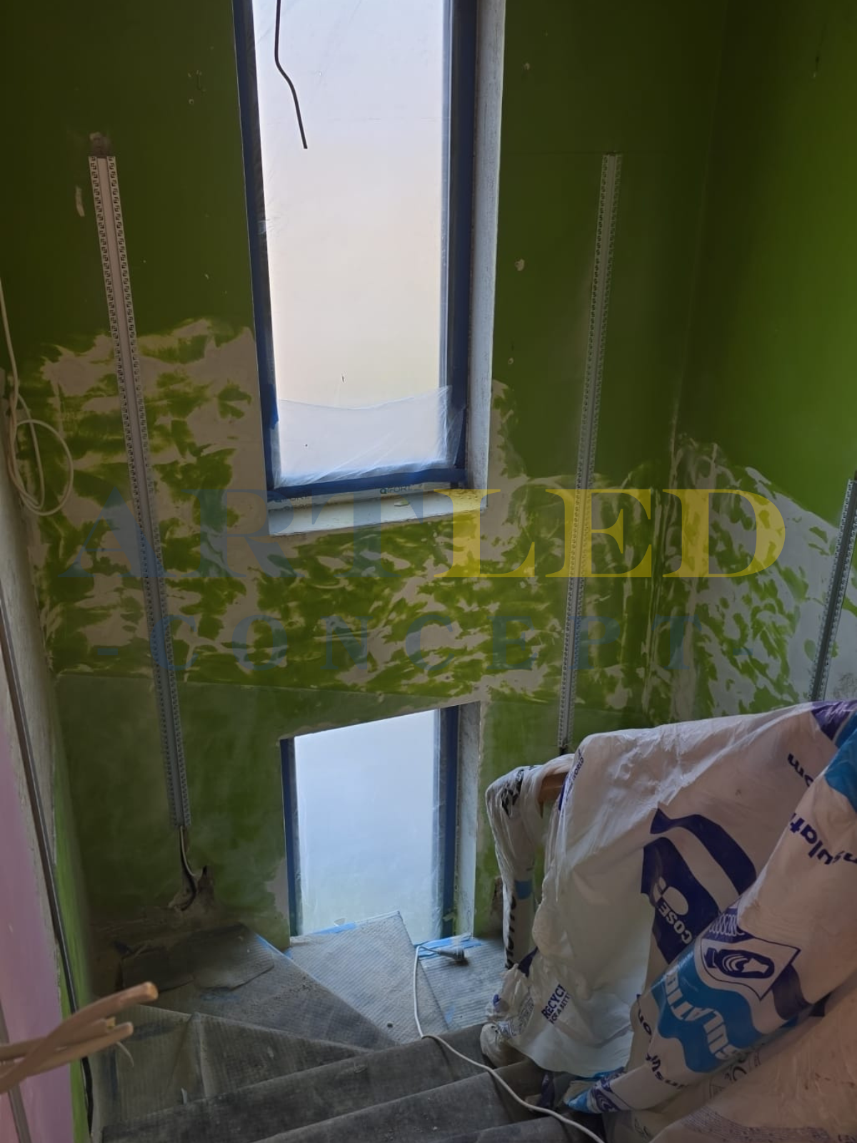 Profilul se aplică încastrat în tavane sau pereți din rigips, precum și în zone termoizolate (polistiren/fațadă), fiind destinat realizării iluminatului liniar arhitectural. Se fixează direct în suport prin prindere mecanică sau adeziv, înainte de finisaj, pentru a obține o integrare perfectă și o linie continuă de lumină.