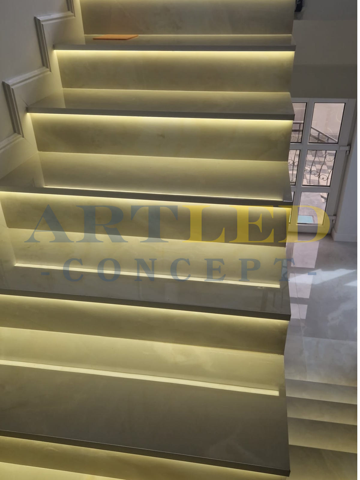 Acest profil este ideal pentru crearea unui iluminat subtil și elegant pe scări. Este cel mai adesea utilizat ca iluminare frontală pe treptele placate cu gresie, oferind iluminat sub trepte în interioare rezidențiale, comerciale sau de ospitalitate. Datorită capacității sale de a se integra perfect sub finisajele placate cu gresie, îmbunătățește atât siguranța, cât și designul. De asemenea, este potrivit pentru utilizarea cu senzori de mișcare pentru iluminare automată și funcționează perfect în spații minimaliste unde se preferă soluțiile de iluminat integrate.