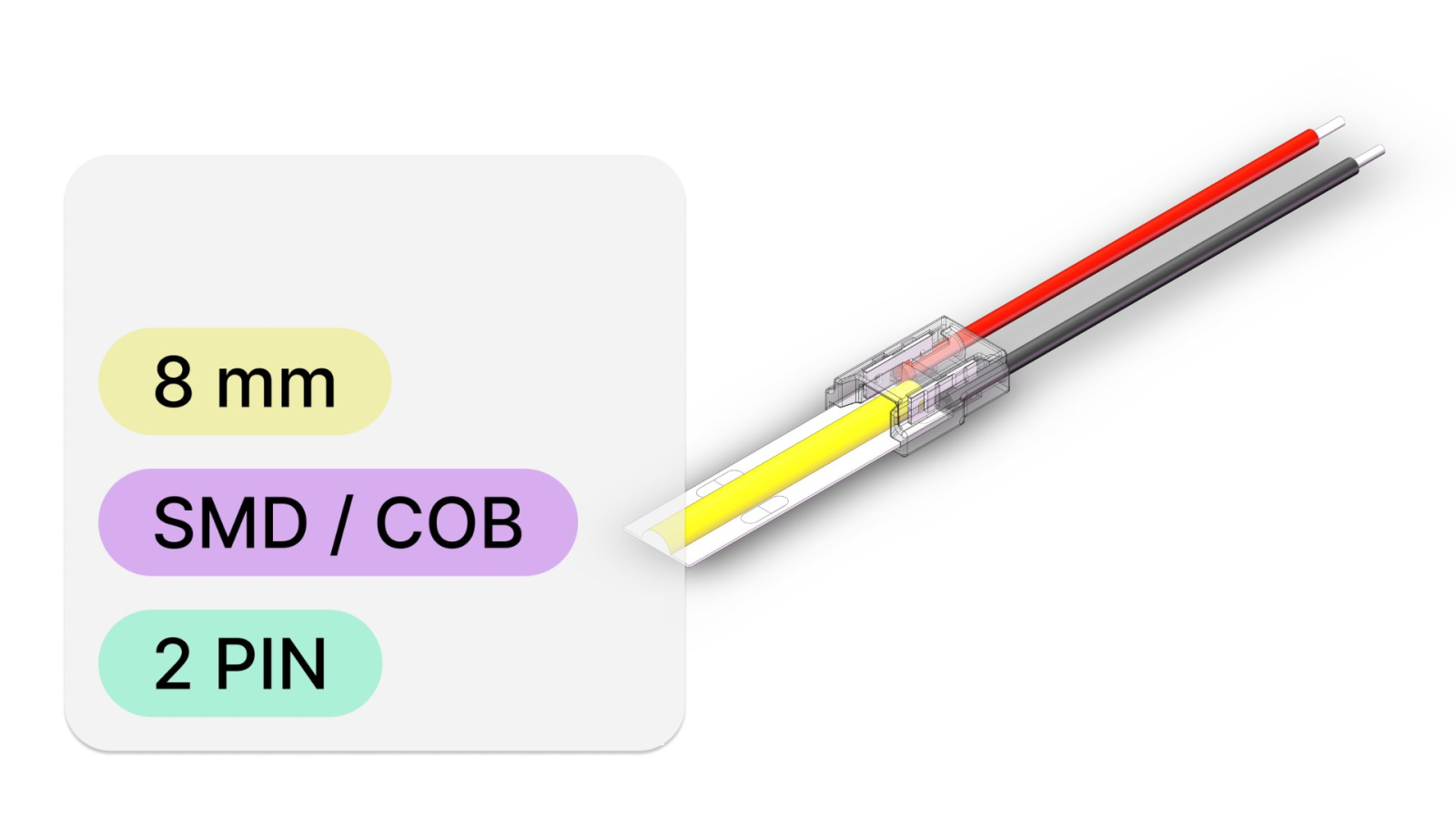 Acest conector este utilizat în instalațiile LED care necesită o conexiune rapidă și sigură între bandă și sursa de alimentare. Ideal pentru benzi LED monocolore de 8 mm , atât în proiecte de iluminat casnic, cât și profesional.