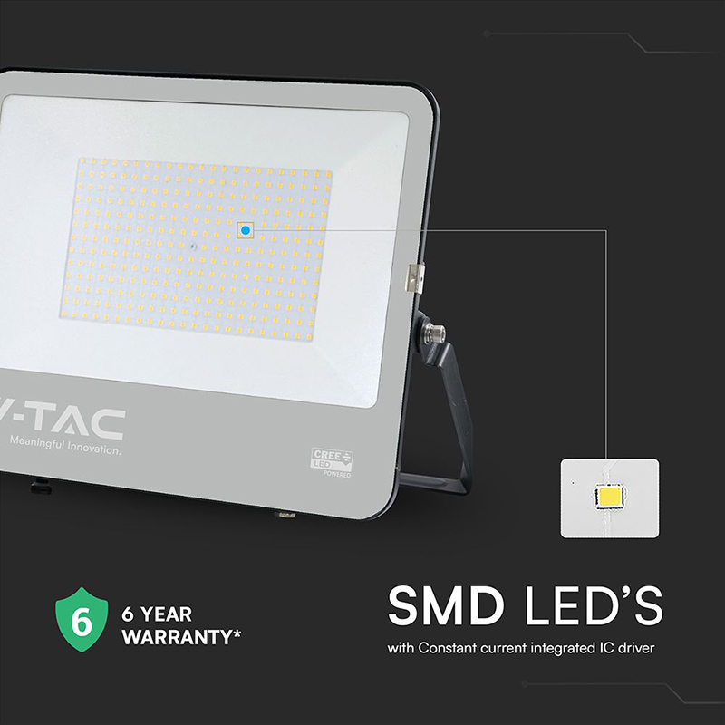 V-TAC REFLECTOR LED 200W 135LM/W 6500K IP65 CABLU 1M CIP CREE - NEGRU/GRI