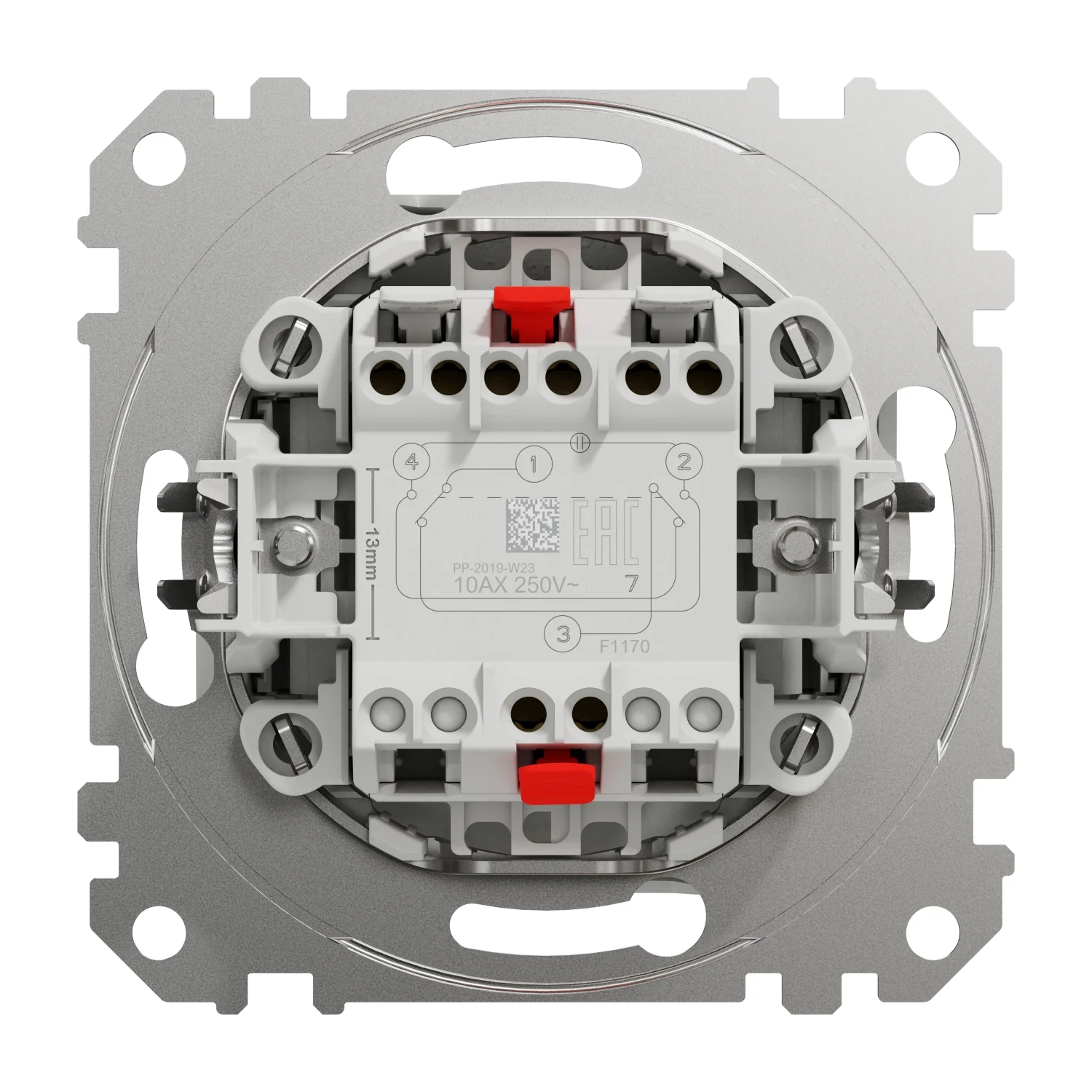 Bornele de conectare ale întrerupătorului sunt cu șurub. Doza de montaj compatibilă poate fi încastrată în perete (montaj îngropat). Modul de fixare al dispozitivului este cu gheare sau șuruburi.